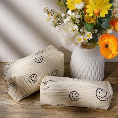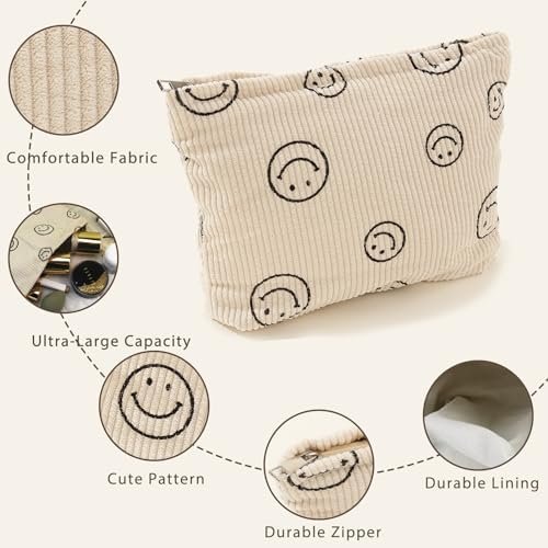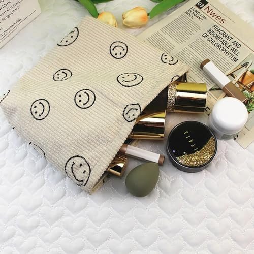The inner lining of the smiley face cosmetic bagcosmetic is made of waterproof material, which can protect your cosmetics. It is durable and has a long service life.
