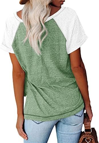MaQiYa Womens Henley Shirts V Neck Short Sleeve Color Block Casual Tees Tops