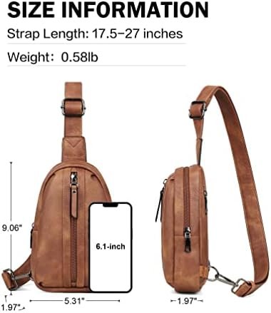 MASINTOR Small Sling Bag for Women and Men – Vegan Leather Crossbody bag with Multiple Compartments for Everyday UseMaterial: 100% vegan PU leatherDimensions: 5.31” Lx 1.97” W x 9.08” HShoulder Strap: (17.5-27″ in length) for more carrying optionsStyle: Sling bag/ Cross-body bag/ Sling bag/Chest bag/Shoulder bagOccasion: shopping, dating, workout, vacations, walking, work, and any daily use