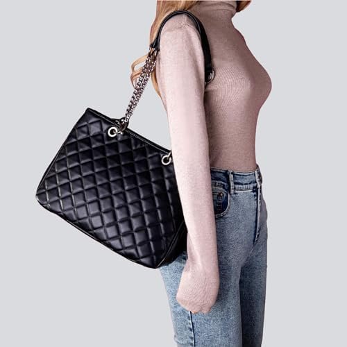 Montana West Quilted Handbag for Women Shoulder Bag Chain Tote Purse With 2PCS Purse Set