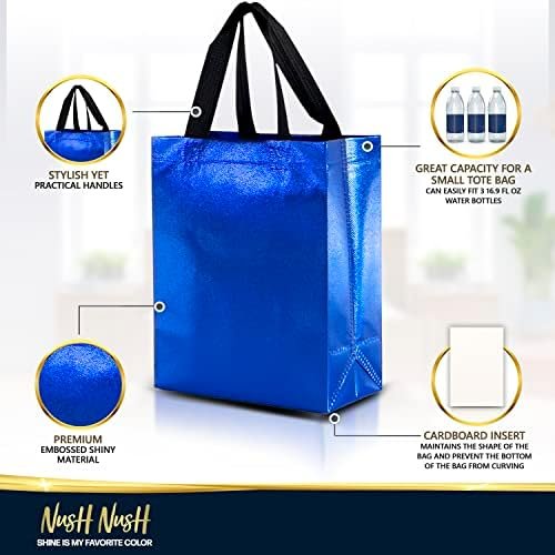 REINFORCED BOTTOM – Each of the 8(W)x 4(D)x10″(H) blue goodie bags comes with a cardboard insert to prevent the bottom of the bag from curving and maintain the tote bag shape even when the bag is empty.