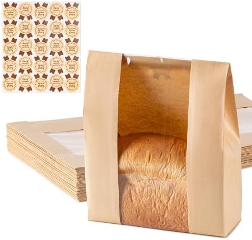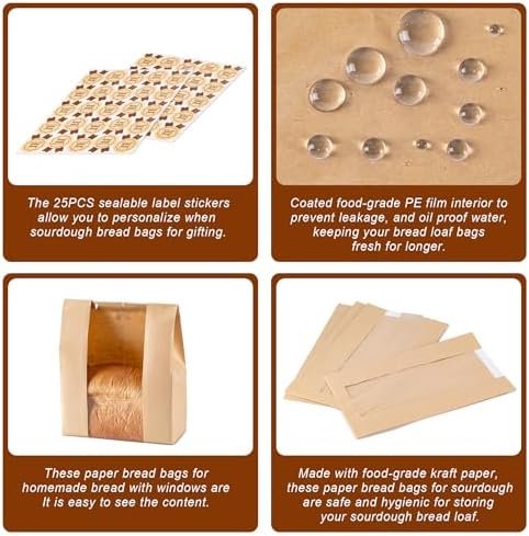 Perfect for Bread Gift Bags for Homemade Bread: These paper bread bags for homemade bread with windows are It is easy to see the content. The sealable label stickers allow you to personalize when sourdough bread bags for gifting.