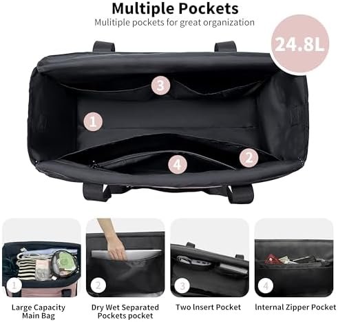 This handbag can be carried by hand or worn as a tote bag for women. It has multiple internal and external pockets, ensuring you have a place for all your belongings. You can pack clothes, books, magazines, documents, cell phones, keys, laptops, glasses, toiletries.