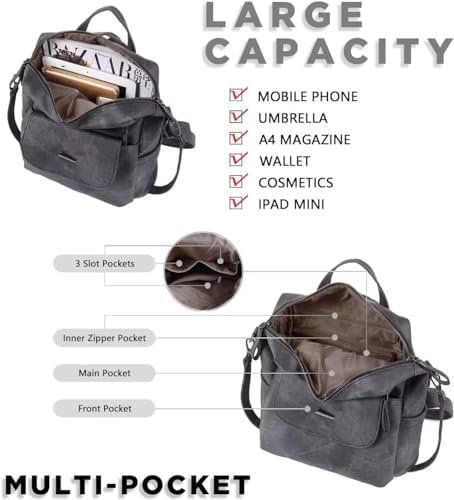 【Organized Roomy Backpack】Perfect size 12″ L x 11″ H for women. Roomy enough for all your daily essentials, like ipad, magazine, file folders, pen, umbrella, perfume and so on.