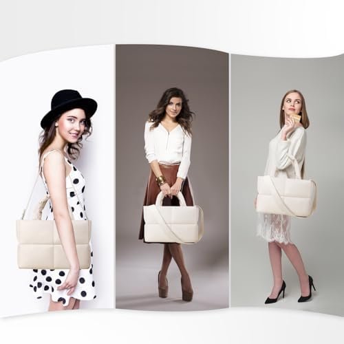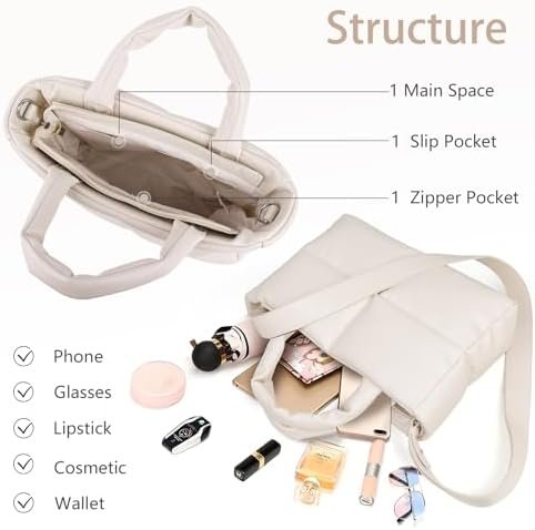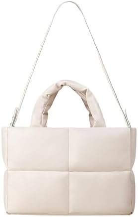 Puffer Tote Bag, Quilted Crossbody Bag with Zipper, Soft Padded Cotton PU Leather Shoulder Bags