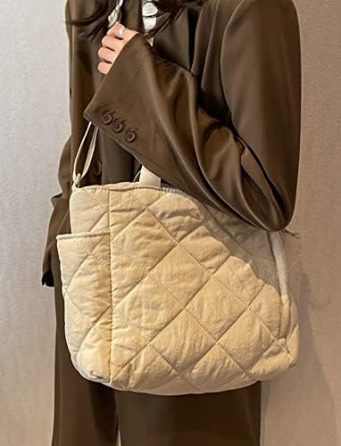 Puffer Tote Bag for Women Quilted Crossbody Handbag Lattice Padded Hobo Purse Casual Y2k Satchel Bag