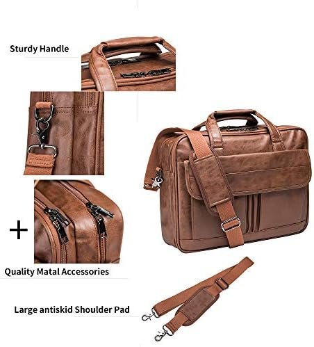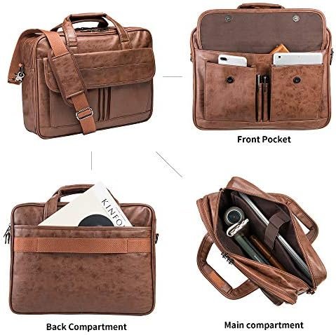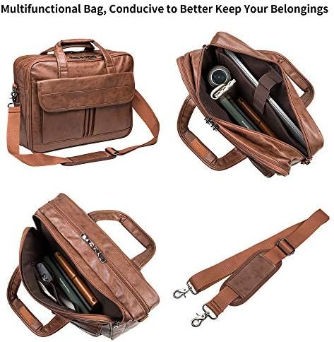 ✅LARGE CAPACITY – The men laptop briefcase includes external 2 pouches & 2 pen slots and inside several slots in front large pocket with adhesive hook and loop tape under flap over, storage penholders, documents, binder, power cords, mouse, 2 main zipper Pocket with foam padded sleeve fits most 15. 6 Inch laptop, back invisible zipper pocket for your valuables.