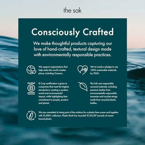 Please expect variations in color, as our yarn is made of ocean-bound recycled plastic and discrepancies are unavoidable. Due to the handmade techniques used by each artisan, variations may occur, making each bag completely one-of-a-kind Interior contains a back wall crochet pocket and two front wall crochet pockets Features signature metal mandala Premium leather from a Leather Working Group Gold-rated certified tannery, REPREVE lining made from recycled materials including plastic bottle