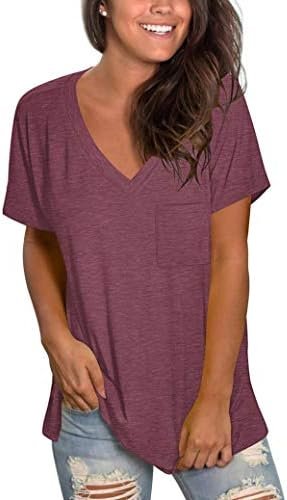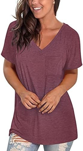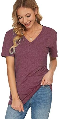 Summer T Shirts for Womens Vneck Basic Tops Short Sleeve Loose Casual Blouses