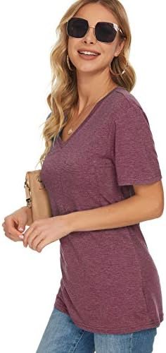 TODOLOR Womens T Shirts Short Sleeve V neck Loose Summer Tees Basic Tunic Tops with pocket