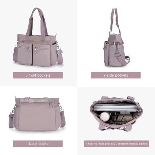 CALUOMATT Tote Bag for Women Nylon Purse and Handbags Tote Purse Crossbody Bag Multi Pocket