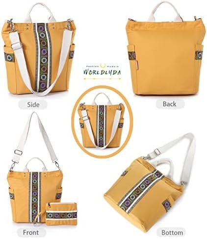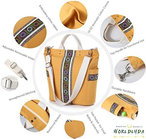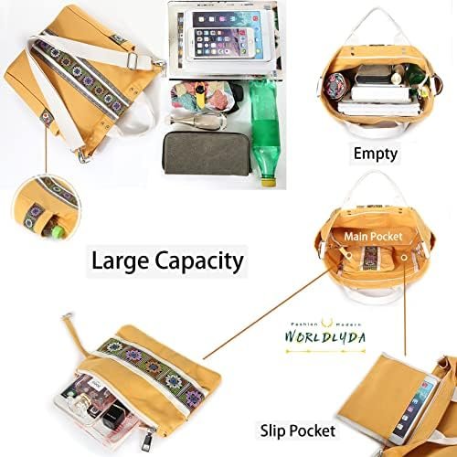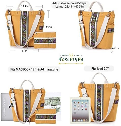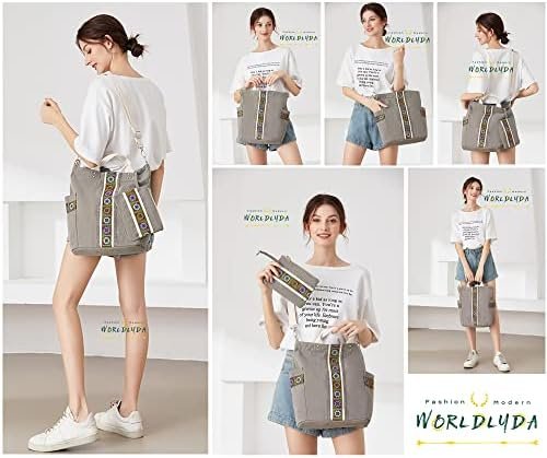 Worldlyda Women Canvas Tote Purse Large Retro Shoulder Bag Casual Crossbody Hobo Top Handle Handbags with Embroidery Ethnic