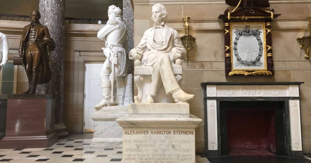 Confederate statues include, among others, Confederate President Jefferson Davis (1931, Mississippi) and Confederate Vice President Alexander Hamilton Stevens (1927, Georgia).