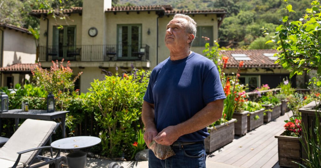 Robert F. Kennedy Jr. drummed his fingers impatiently on his lawn chair as a reporter and cameraman crouched expectantly in the bushes behind his Los Angeles home, where two wild ravens were not cooperating with the photo op.