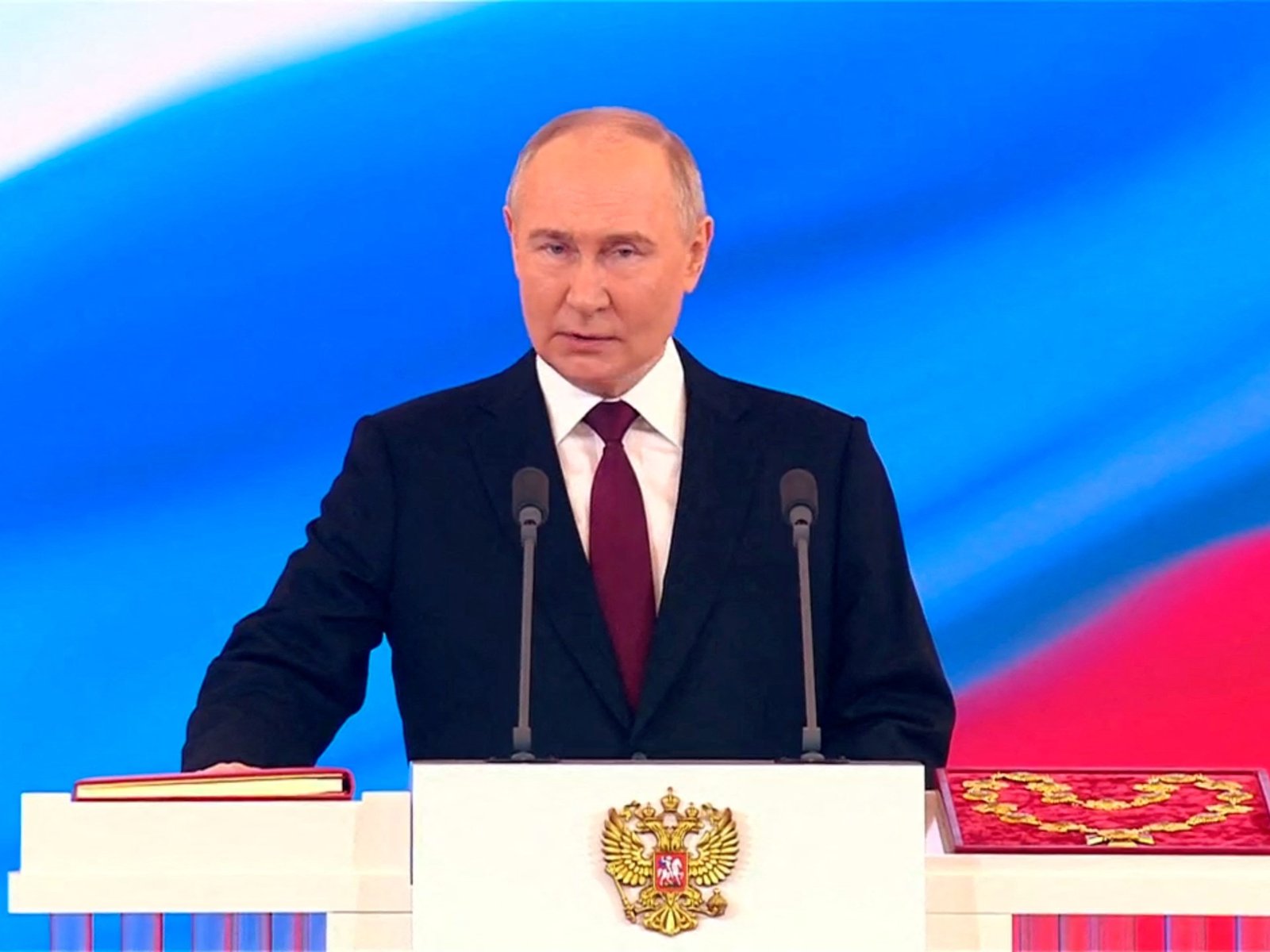 At his inauguration ceremony for a record fifth term at the Grand Kremlin Palace on Tuesday, President Putin said Russia would come out of the current “difficult” period stronger and emerge victorious.