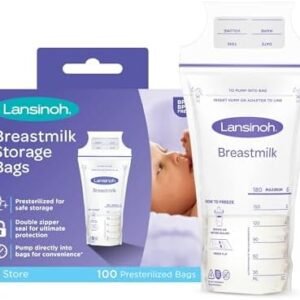 Lansinoh Breastmilk Storage Bags, 100 Count, 6 Ounce, Easy to Use Milk Storage Bags for Breastfeeding, Presterilized, Hygienically Doubled-Sealed, for Refrigeration and Freezing