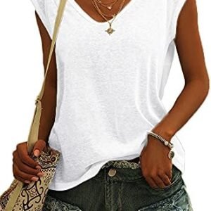 Langwyqu Womens’ Cap Sleeve Casual Loose Fit Basic Shirts Tank Tops