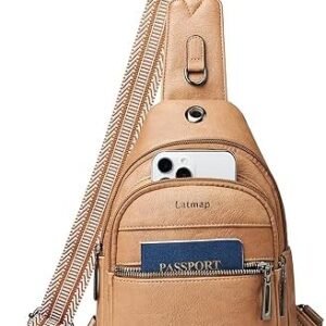 LATMAP Sling Bag For Women Men Leather Small Backpack Fanny Pack Crossbody Chest Bags Purse waterproof Sling Bag For Women