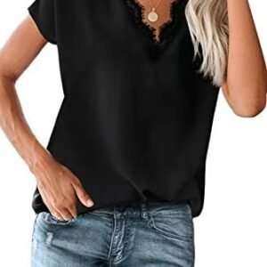 lime flare Dressy Lace Trim Blouse Tops Popular Short Sleeve Shirt