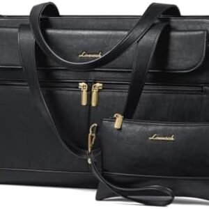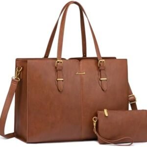LOVEVOOK Laptop Tote Bag for Women, 15.6 inch Work Tote Laptop Bag with Clutch Purse, Vintage Leather Computer Bag Briefcase for Office, Business, Casual
