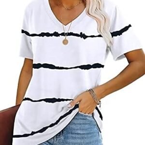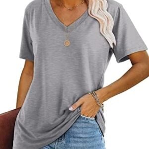 Lunivop Womens Tops Casual V Neck Short Sleeve Solid Color Basic T Shirt