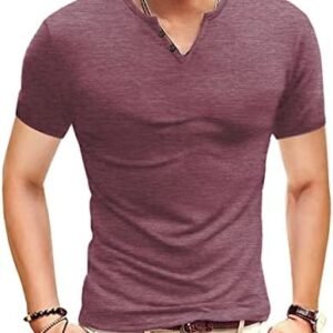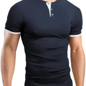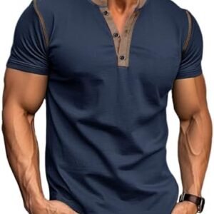 Men’s Casual Henley Shirts Short Sleeve Button Solid Contrast Color Fitted T-Shirts