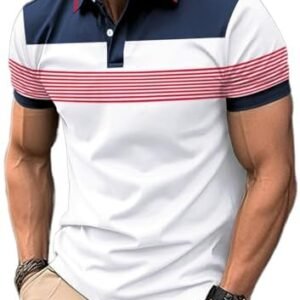 Men’s Casual Polo Shirts Short Sleeve Fashion Golf Shirt Classic Striped Slim Fit T-Shirts