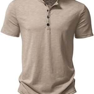 Men’s Casual Stretchy Slim Fit Short Sleeve Henley Shirt