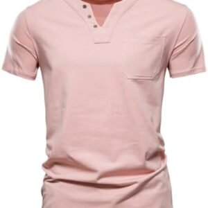 Men’s Casual T-Shirt V Neck Henley Shirt Short Sleeve Tops Cotton Chest Pocket