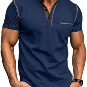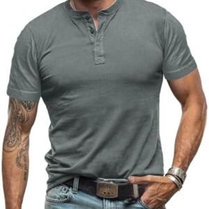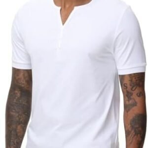 Men’s Fashion Henley Shirt Classic Short Sleeve Lightweight Button Slim Fit T-Shirt Casual Top