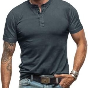 Men’s Henley Short Sleeve Button T-Shirt Cotton Casual Shirts Fashion Summer