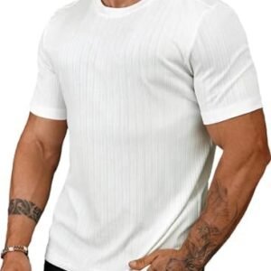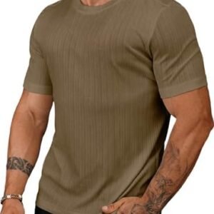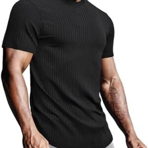Men’s Ribbed Shirt Short Sleeve Slim Fit Muscle T Shirts Stretch Bodybuilding Workout Ribbed Knit Tee