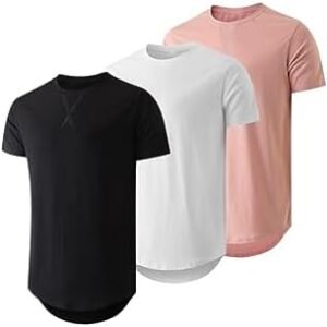 Mens 3 Pack Crewneck T-Shirt Cotton Hipster Hip Hop Longline Classic Top
