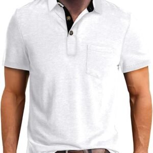 Men’s Athletic Short Sleeve Polo Shirts Casual Moisture Wicking Golf Shirts Buttons Collared Solid T Shirts with Pocket