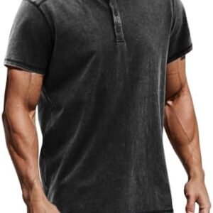 Mens Casual Short Sleeve Henley Shirts Fashion Button T Shirts with Pocket