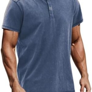 Mens Distressed Henley Shirts Casual Washed T-Shirts Retro Short Sleeve Tee Cotton Shirts