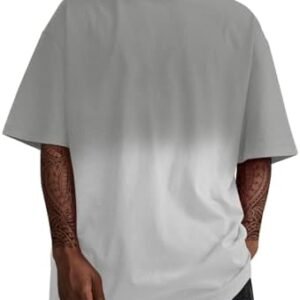 Mens Fashion Short Sleeve Cotton T-Shirt Workout Oversize Pullover Gradient Dyeing Casual Tees