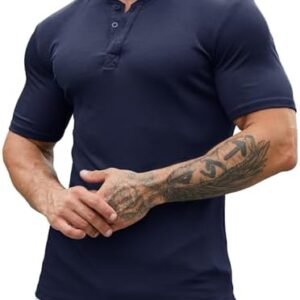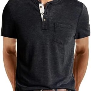 Mens Muscle Slim Henley Shirts Stretch Ribbed Casual Short Sleeve Basic T-Shirt with 3 Buttons