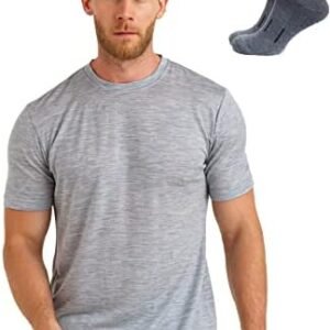 Merino.tech Merino Wool T-Shirt Mens – 100% Organic Merino Wool Undershirt Lightweight Base Layer + Hiking Wool Socks