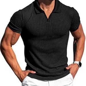 Mens V Neck t Shirts Slim Fit Muscle Polo Shirts for Men Short Sleeve Dry Fit Golf Shirts Casual Stylish Clothes
