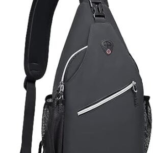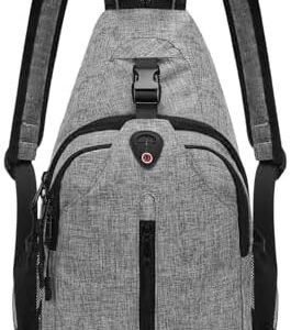 MOSISO Sling Backpack Travel Hiking Daypack for Men Women, Double Layer Crossbody Convertible Sling Bag with Front Vertical Pocket One Shoulder Chest Bag, Gray