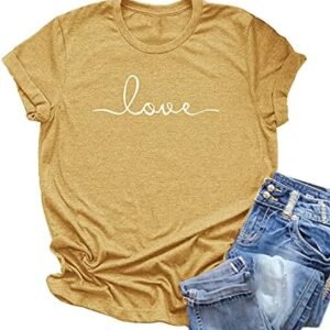 NIUBIA Women’s T-Shirt Graphic Tees Love Printed Casual Short Sleeve Tops Summer Loose Fitted Top