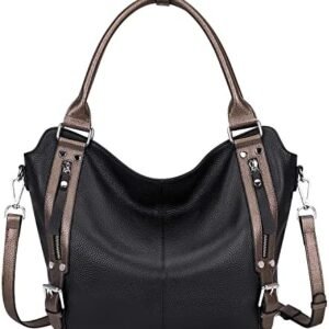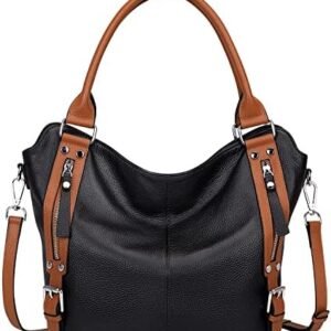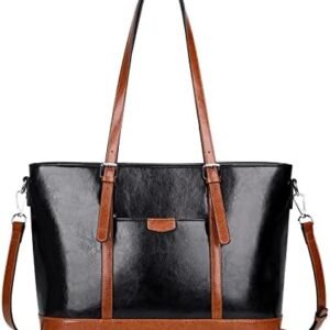 Over Earth Leather Tote Bag for Women Large Leather Handbags Shoulder Work Purses(O187E Black/Brown)