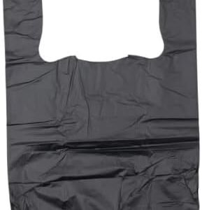 Plastic Bag-Black Plain Embossed T-Shirt Bag 8″x 4″x 15″ 15 mic – 1500 bags/case