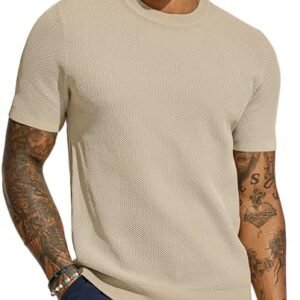 PJ PAUL JONES Men’s T-Shirts Casual Knit Short Sleeve Crewneck Honeycomb Waffle Solid Knitted Pullover Tees