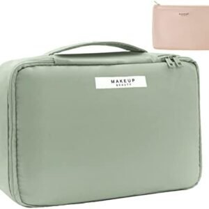 Queboom Travel Makeup Bag Cosmetic Bag Makeup Bag Toiletry bag for women and girls Gifts Christmas gift (Green)