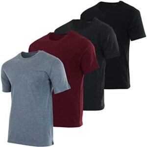Real Essentials 4 Pack: Men’s Cotton Performance Short Sleeve Crew Neck Pocket T-Shirt Athletic Top (Available in Big & Tall)