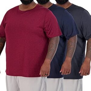 Real Essentials 3 Pack: Men’s Big & Tall Tech Stretch Long-Sleeve & Short-Sleeve Dry-Fit T-Shirt (3XT-5XT)