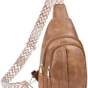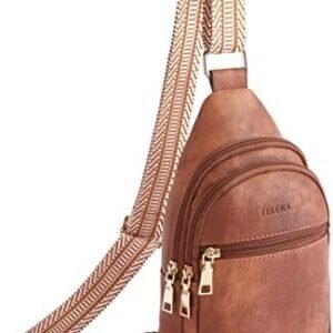 Telena Sling Bag for Women Crossbody Purse Vegan Leather Fanny Pack Chest Bag Camel Brown