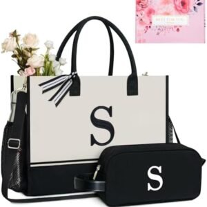 TOPDesign Personalized Initial Tote Bag with 5 Pockets, Top Zipper Closure, Birthday Gift Set for Women, Mom, Teachers